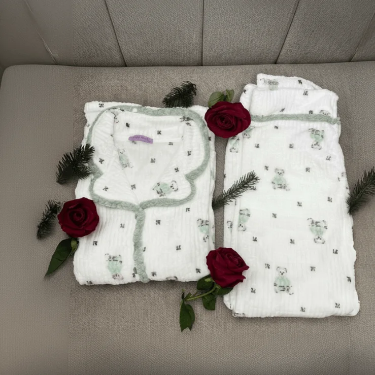 Imprimé d’oursons et de fleurs, apportant douceur et charme au pyjama.